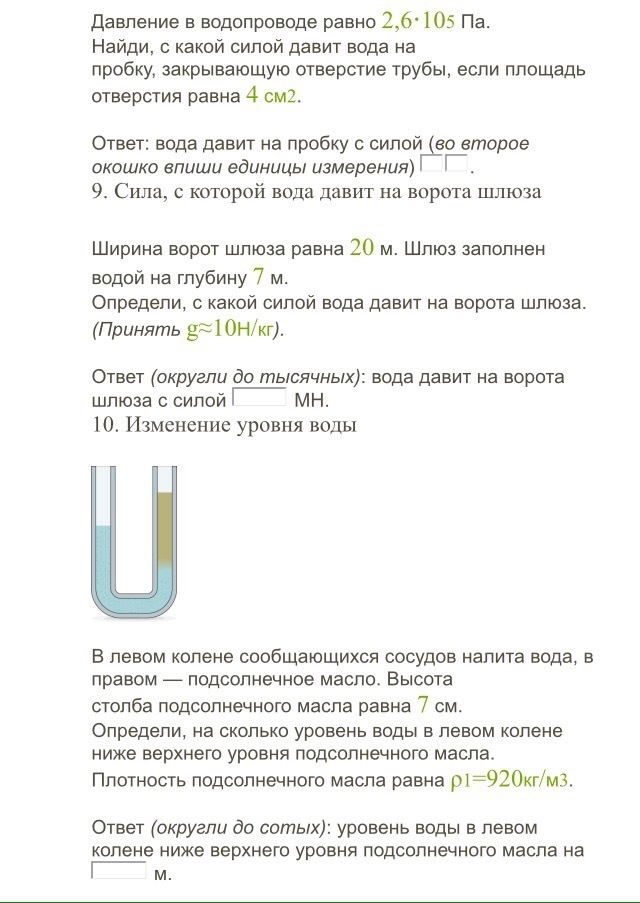 1 Давление в сосудах разное так как плотности этих веществ разное