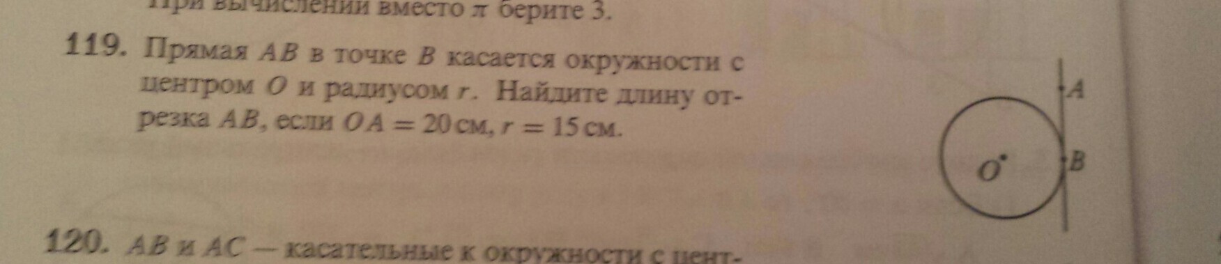АВ=√ОА² - ОВ²=√20²-15²=√400-225=√175=√25*7=5√7 см