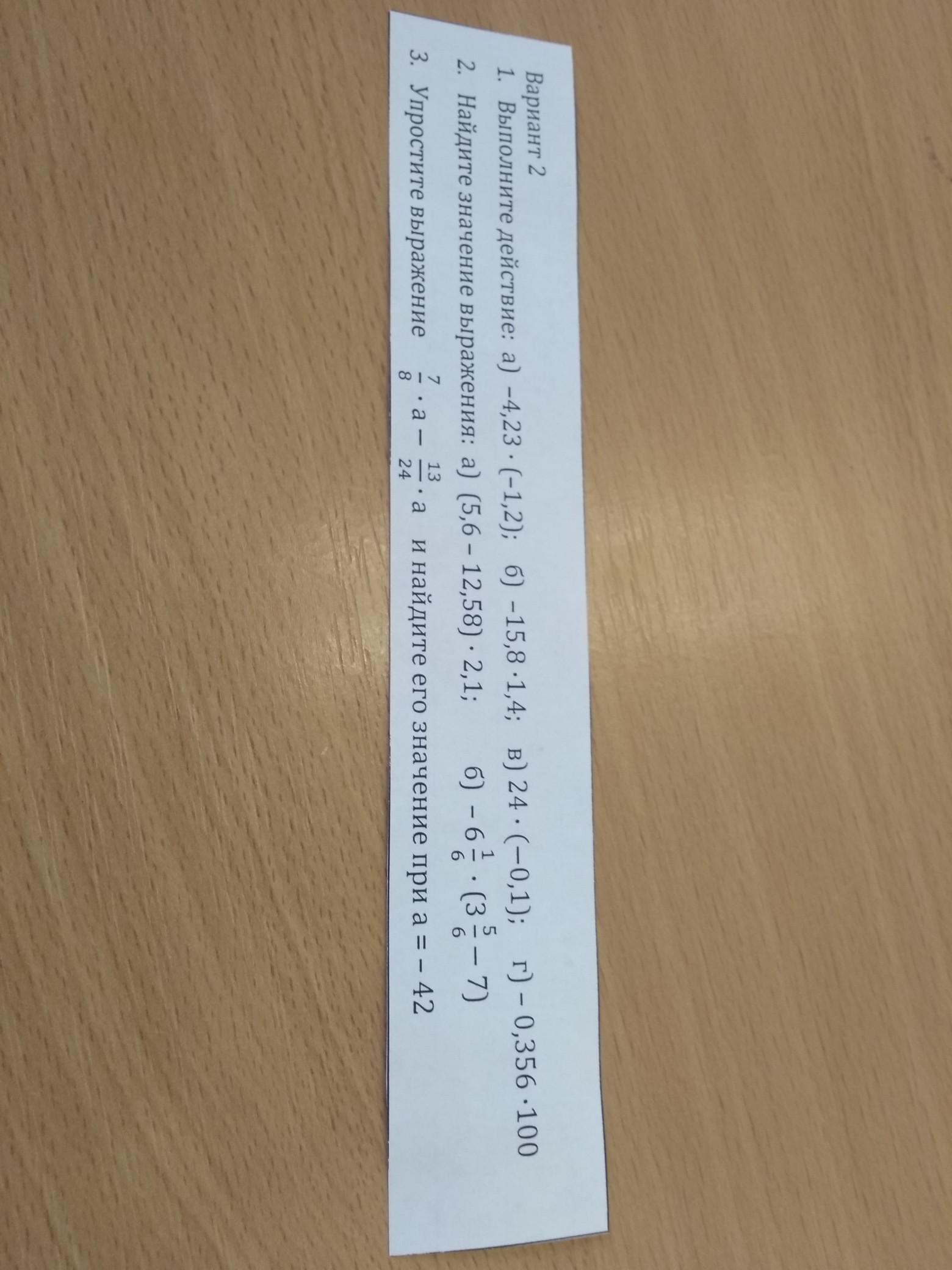 7/8 * а - 13/24 * а = а * (7/8 - 13/24) = а * (21/24 - 13/24) = а * 8/24 = 1/3а = 1/3 * (- 42) = - 42/3 = - 14