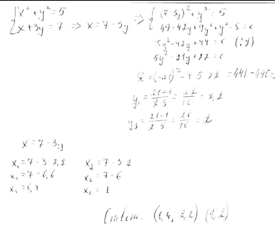 помогите решить систему уравнений {(x^(2)+y^(2)=5)