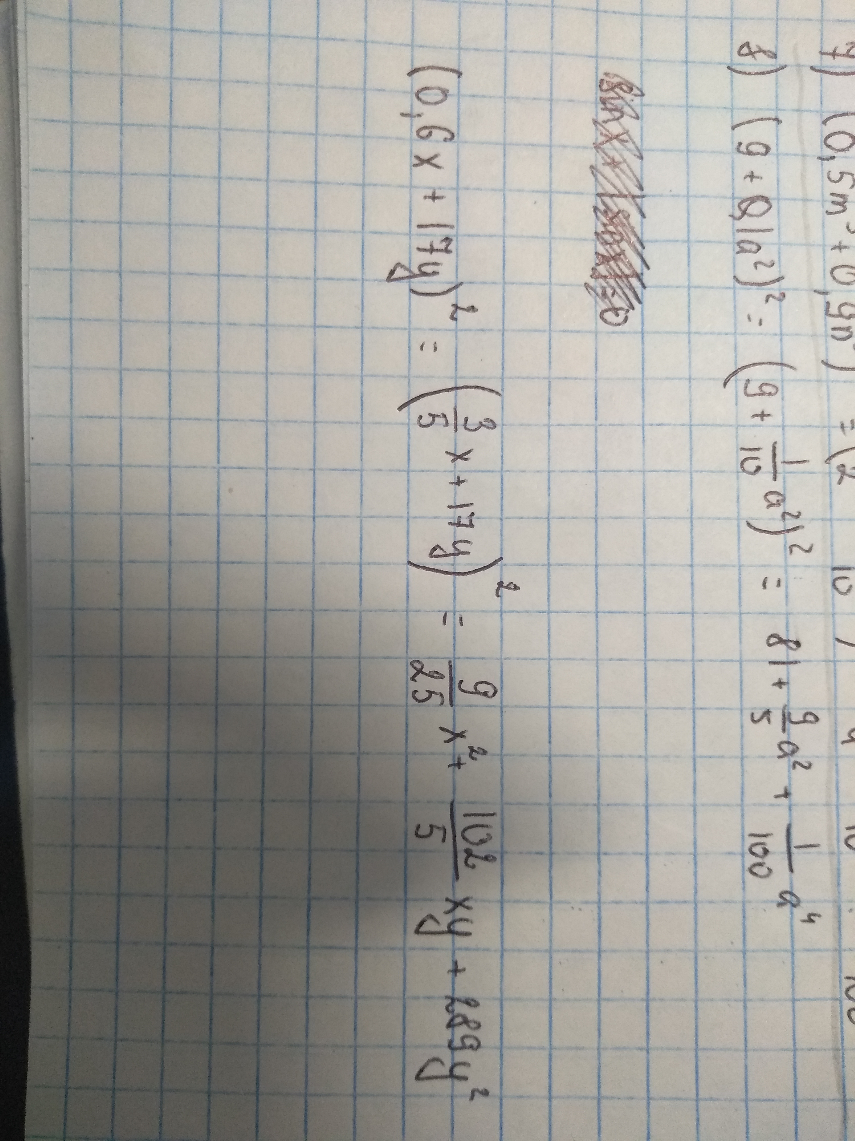 7.) (0,5m^3+0,9n^3)^2=0.25m^6+0.9m³n³+0.81n^6