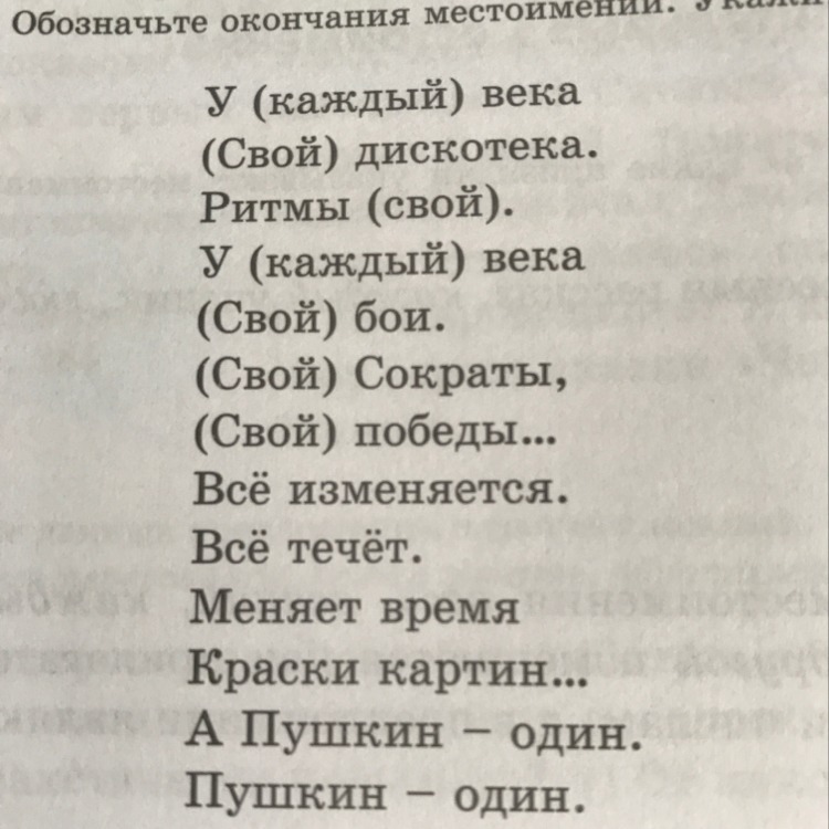 Прочитайте и сформулируйте основную мысль стихотворения.Спишите,раскрывая скобки.Обозначьте окончание местоимений.Укажите иx разряд