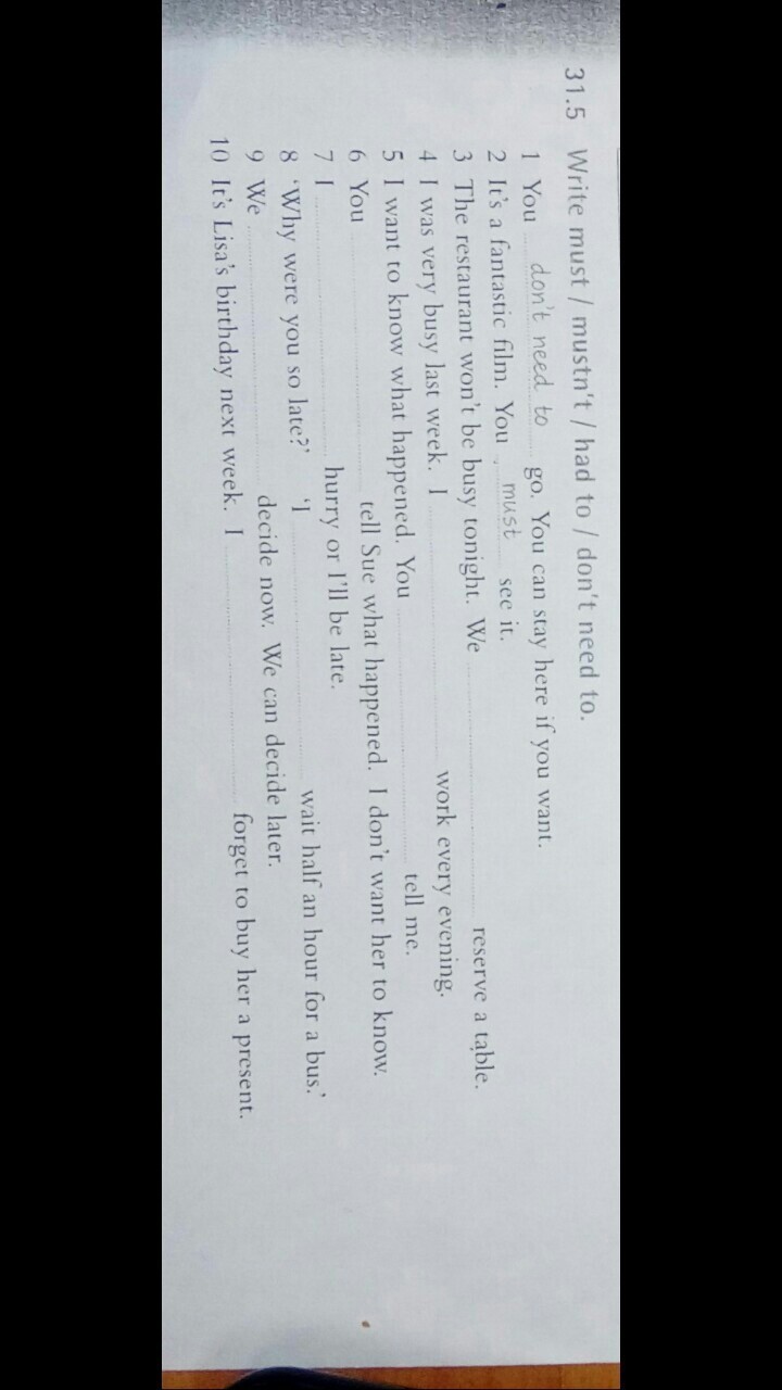 10. mustn't.