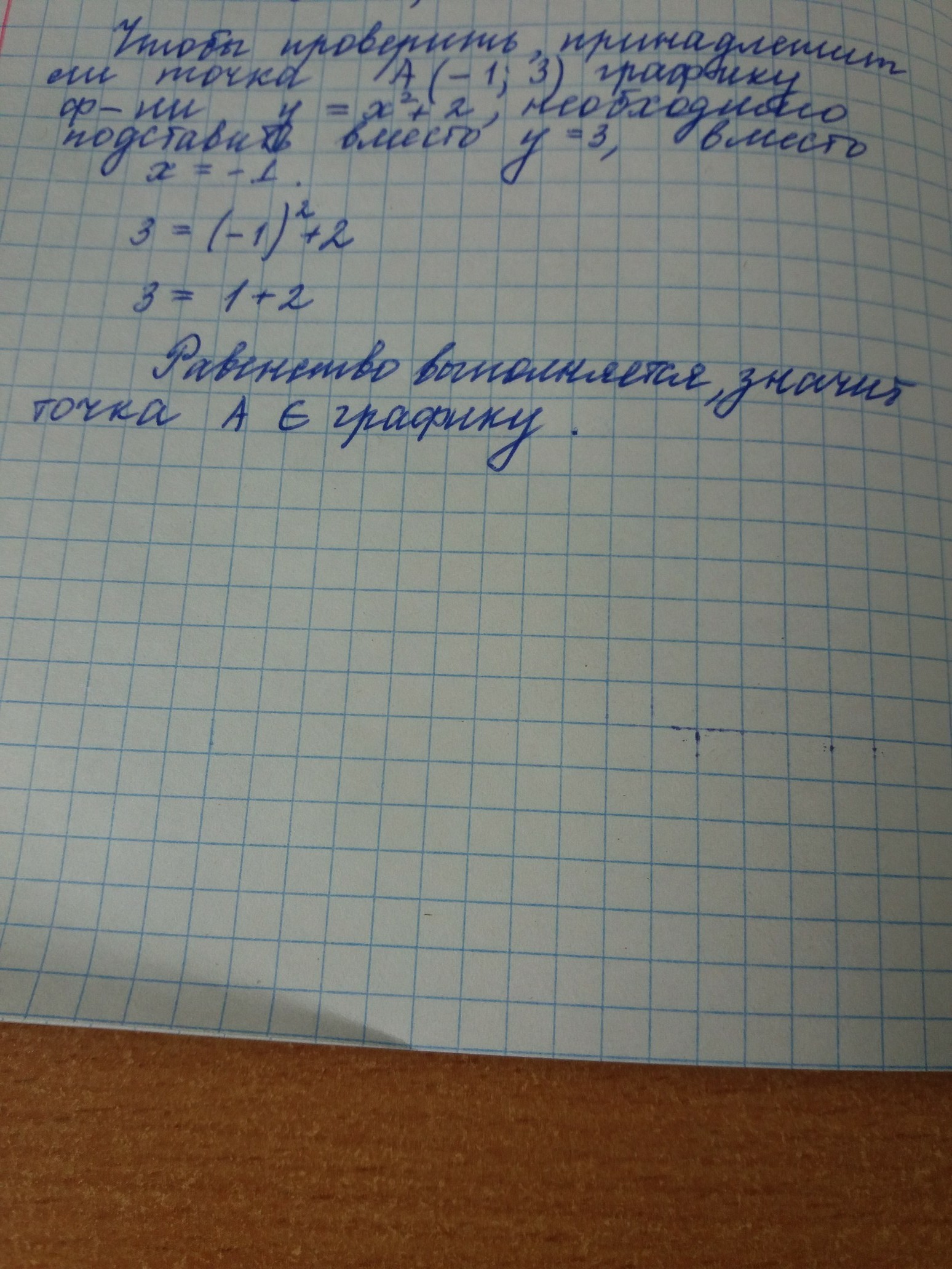 чи належить графіку у=х2+2 точка А(-1;3)