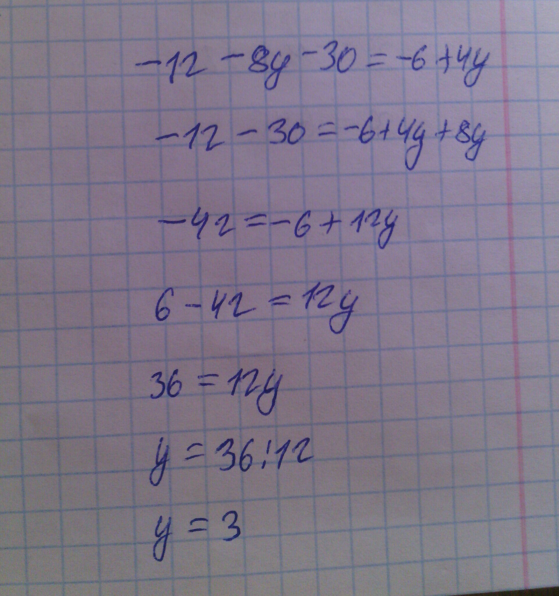 -8у - 4у = -6 + 12 + 30