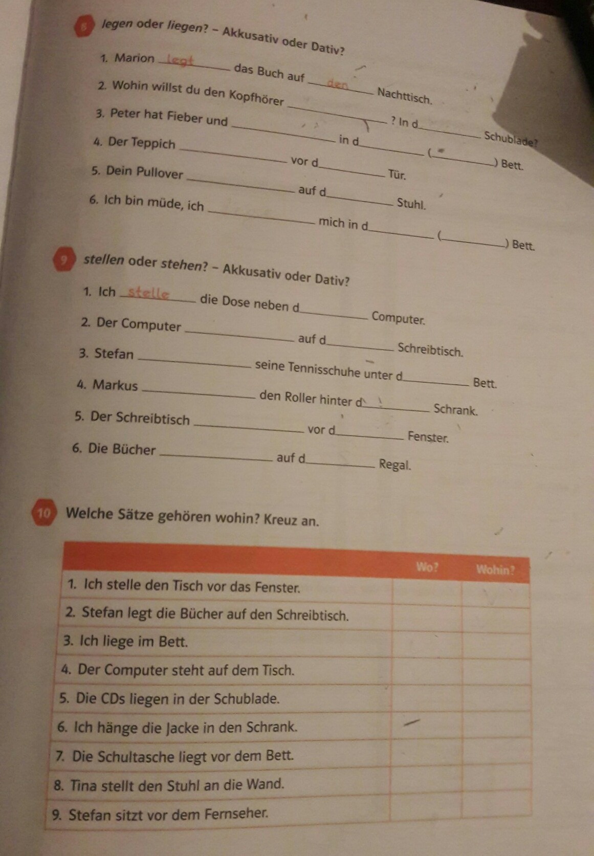 6.lege mich in das (ins) Bett