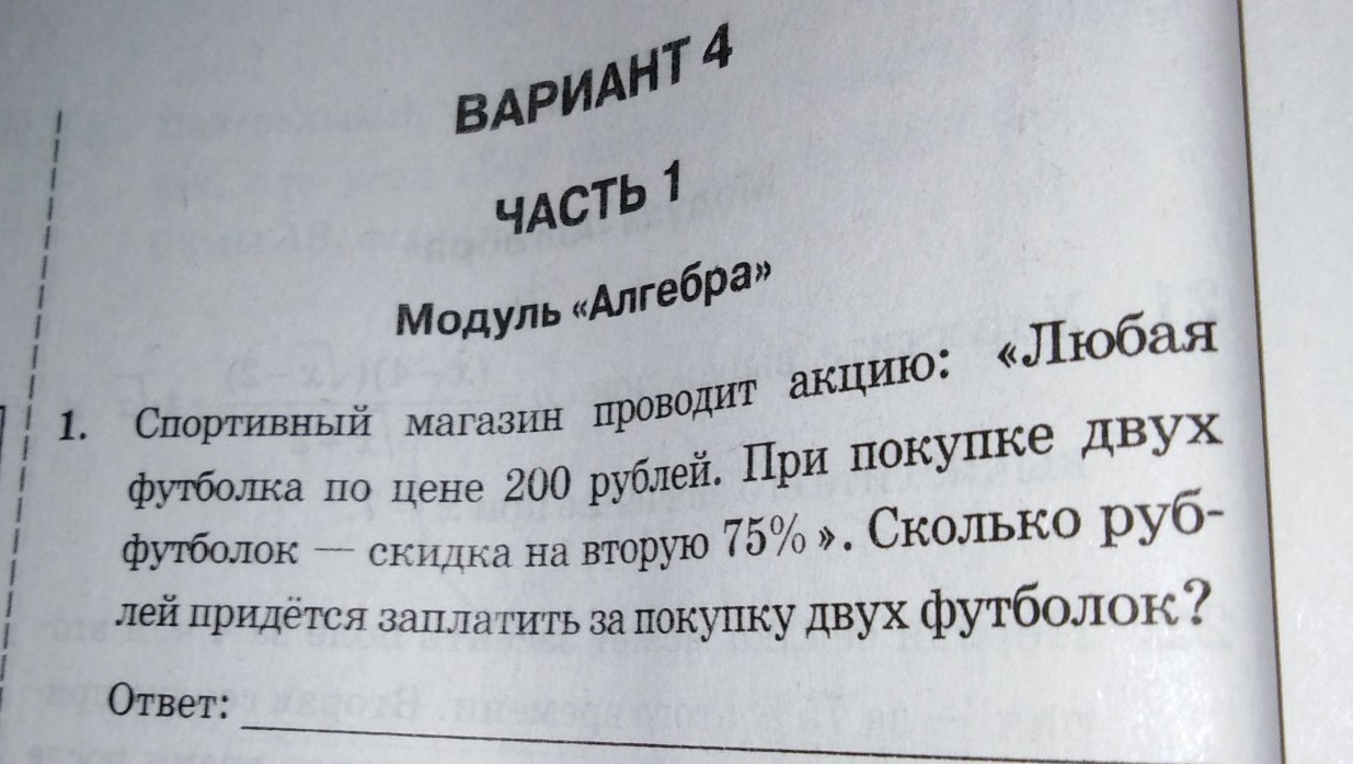 3) 200 * 1,25 = 250 руб. - придется заплатить за 2 футболки,