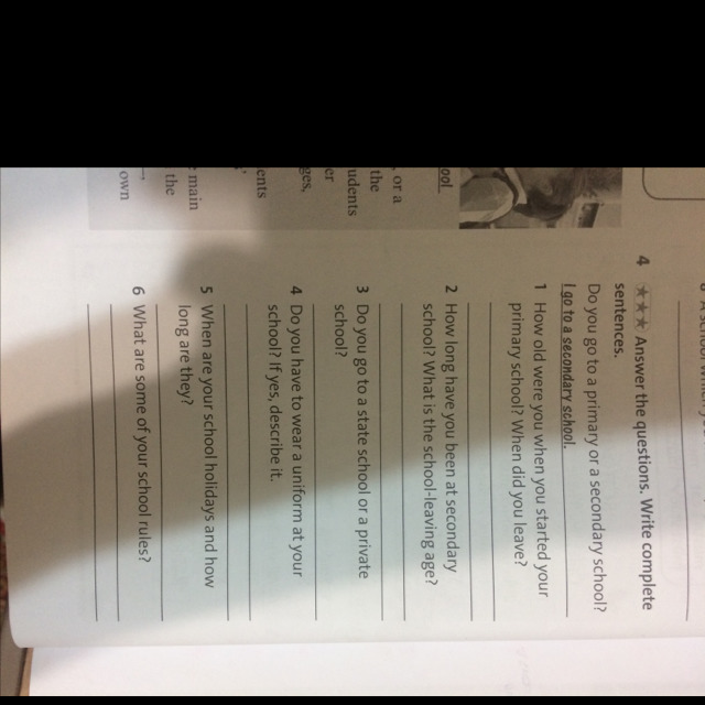 У тебя есть в школе униформа? Если да, опиши(например если вас заставляют одевать школьную форму, то напиши I have a uniform in school, it's a black skirt and a white blouse, or black pants and a white shirt. Это например)