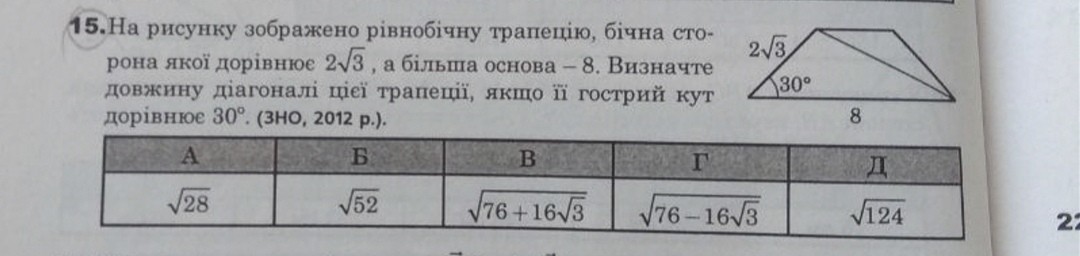 А...Проведи высоту на основу и решай через теорему Пифагора