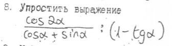 cos2α/(cosα + sinα) : (1 - tgα) = (cos²α - sin²α)/(cosα + sinα) : (1 - tgα) =