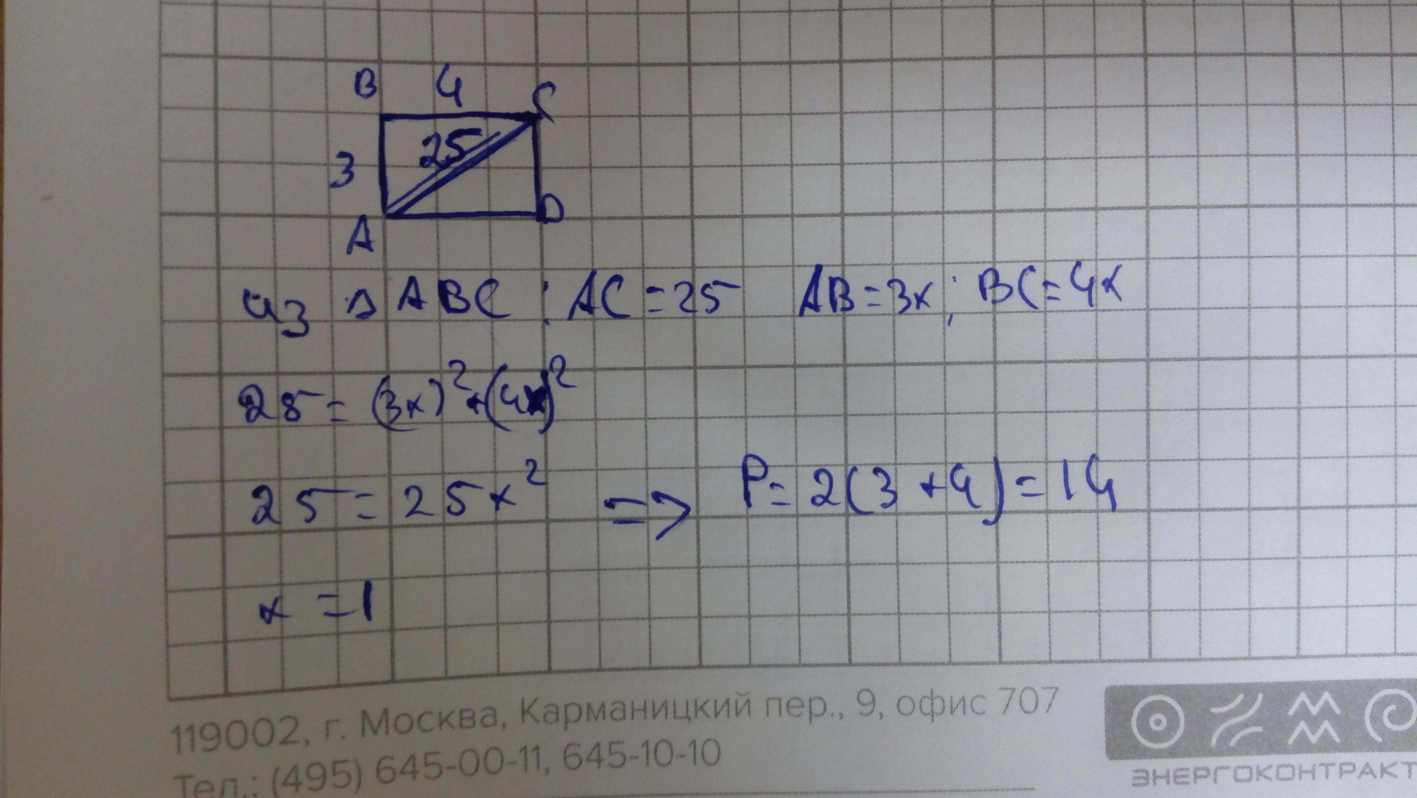 (3х)²+(4х)²=25²; х=5. Длина равна 4*5=20см; Ширина равна 3*5=15см