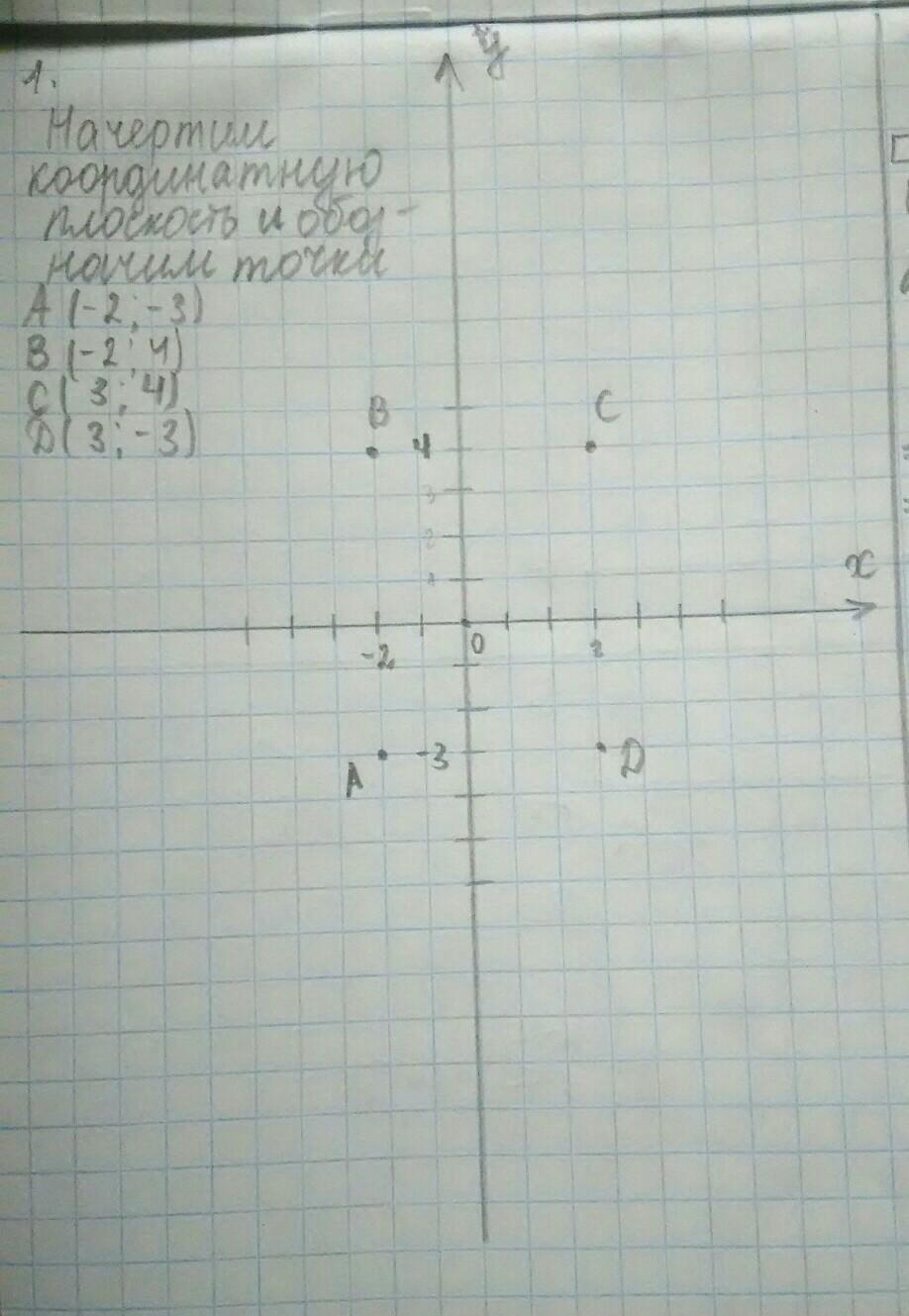 Постройте прямоугольник с вершинами A(-2;-3), B(-2;4), C(3;4), D(3;-3) и найдите его площадь.