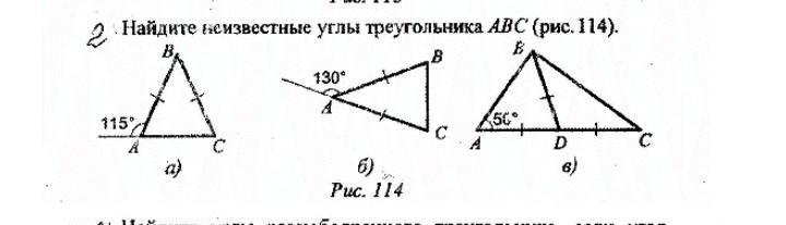 а) ∠BAC=180-115=65°(сумма смежных углов равна 180°)
