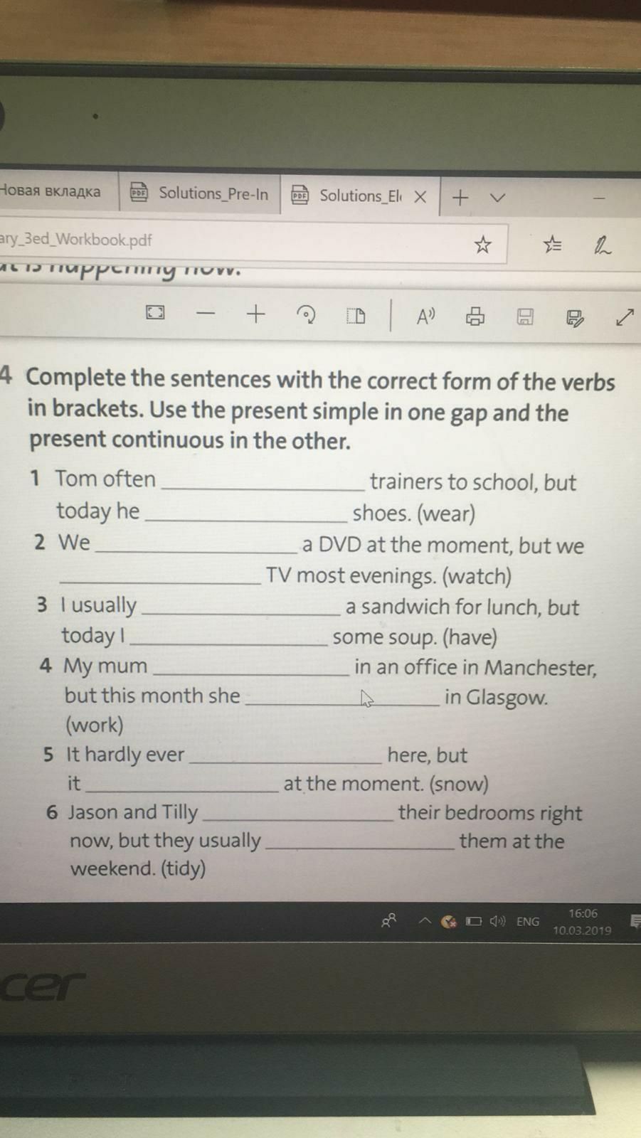 1. wears, is wearing