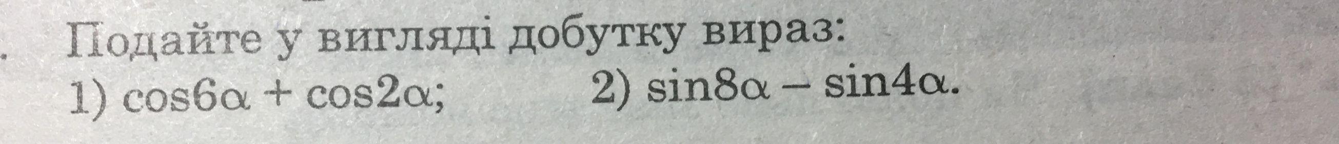 cos6a+cos2=2(cos(6a+2a)/2)*cos(6a-2a)/2)=2(cos(4a)*cos(2a))