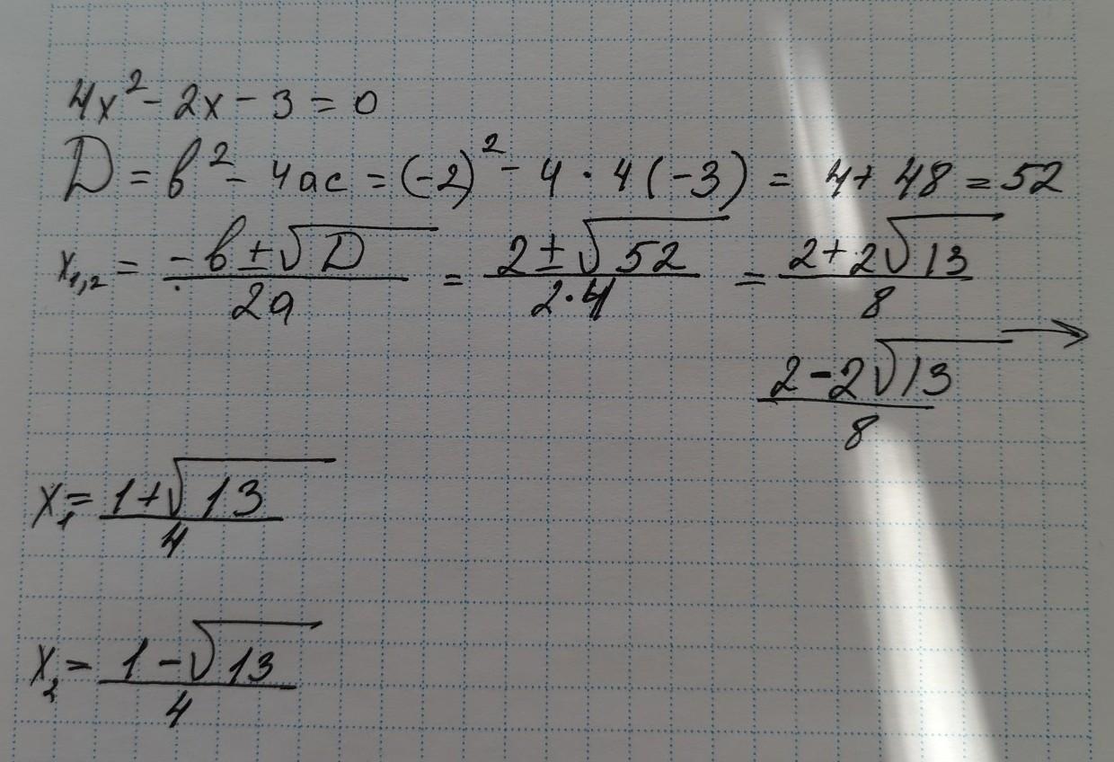 решить уровнение общей формулой 4× в квадрате-2×-3=0 срочнооо