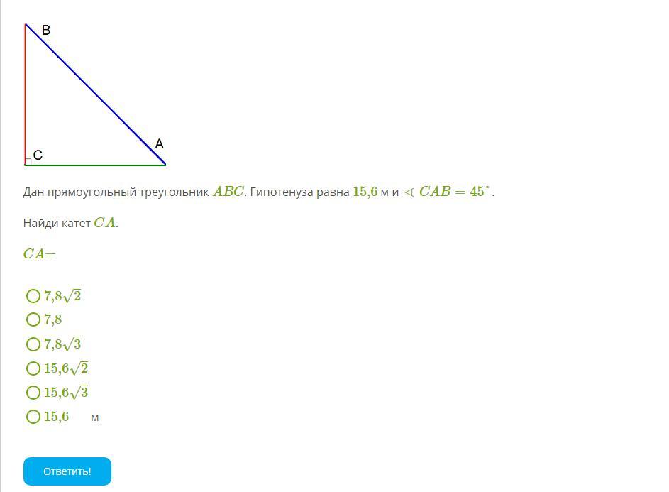 ∠CAB=45° ⇒ ΔBCA равнобедренный