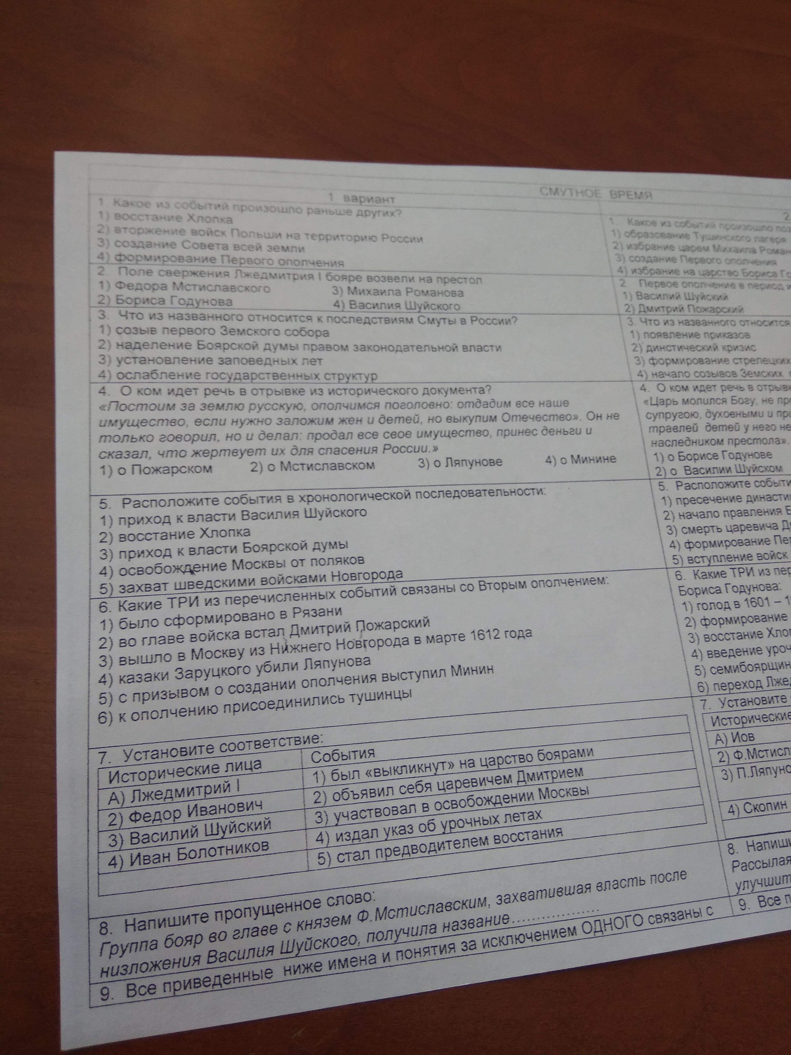 Помогите с тестом по истории тема смутное время