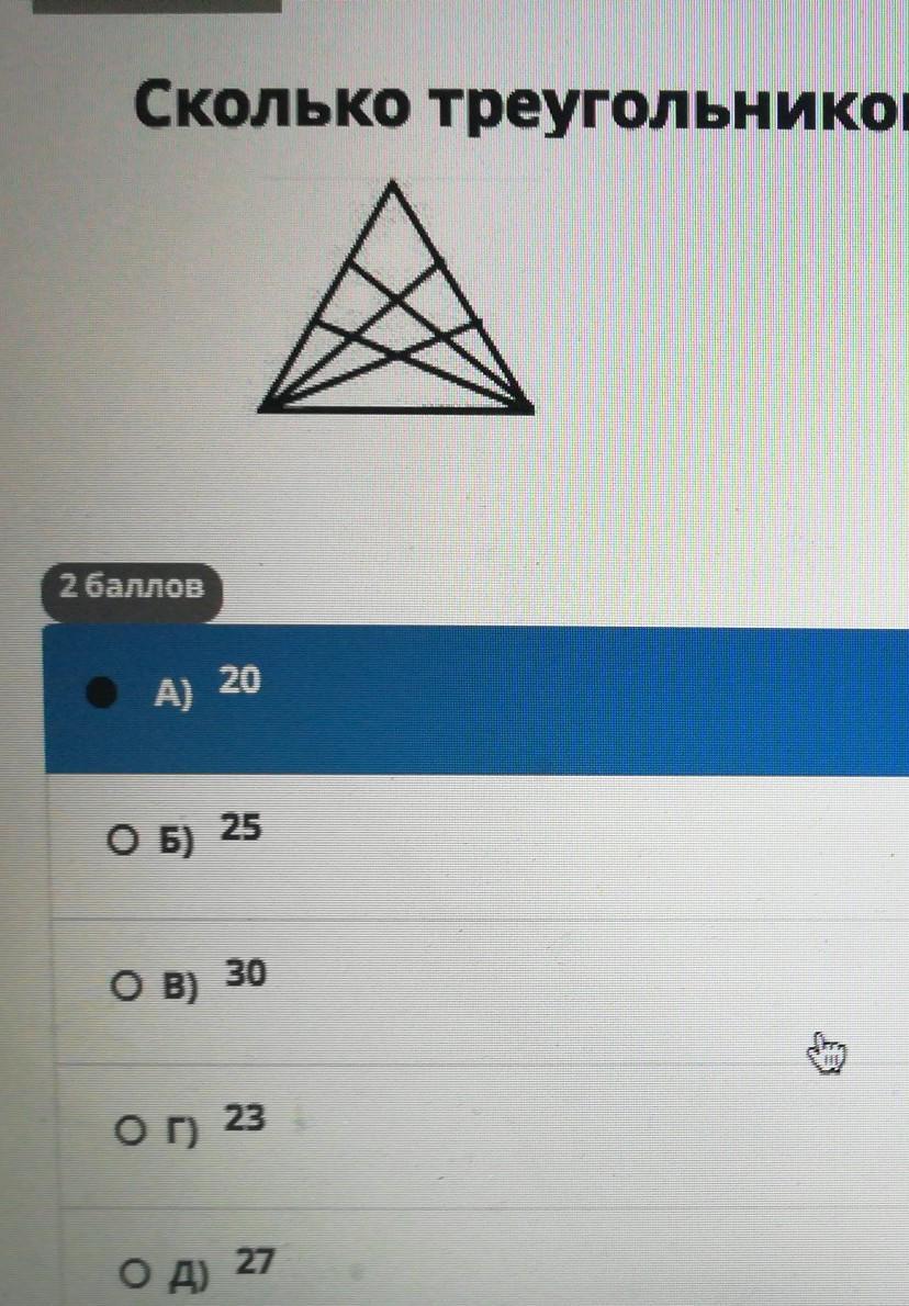 Стыдно признать,но я насчитывал то 27 то 29. В итоге оказалось что я посчитал дважды один и тот же треугольник.