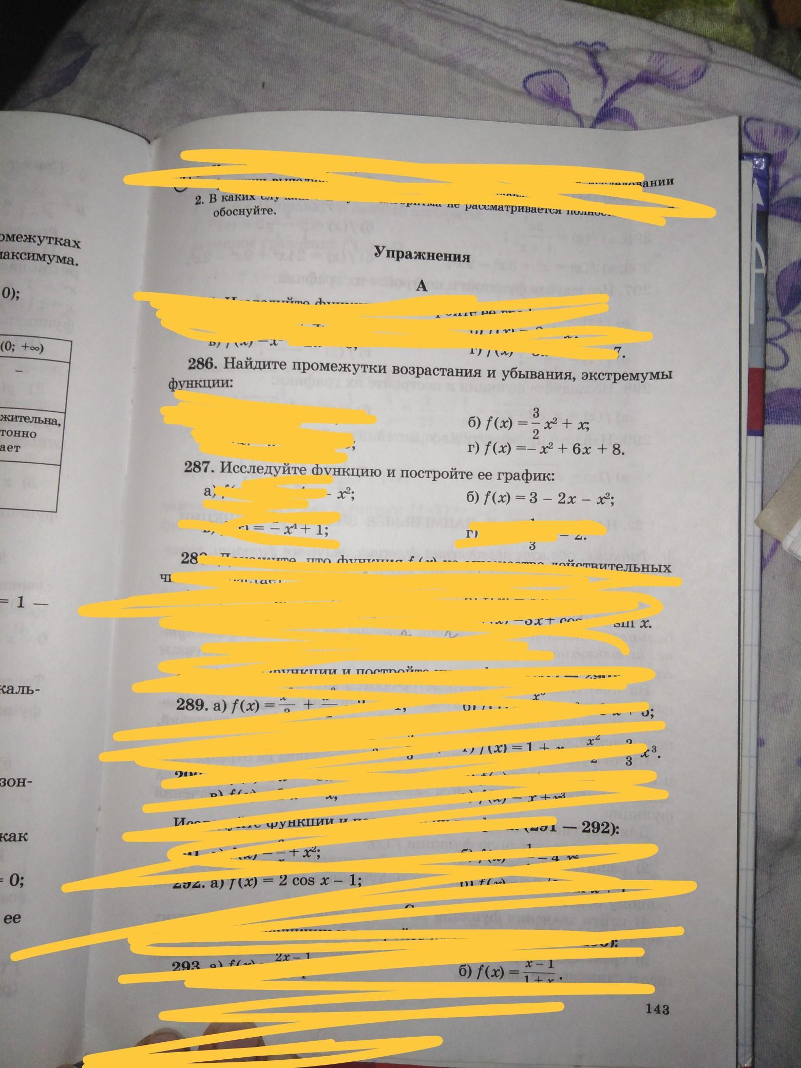 286б) f(x)=3/2x^2+x, f`(x)=3x+1, 3x+1=0, x=-1/3, на числ. прямой отмечаем