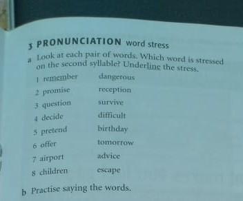 подчеркни remember, reception, survive, decide, pretend, tomorrow, advice, escape