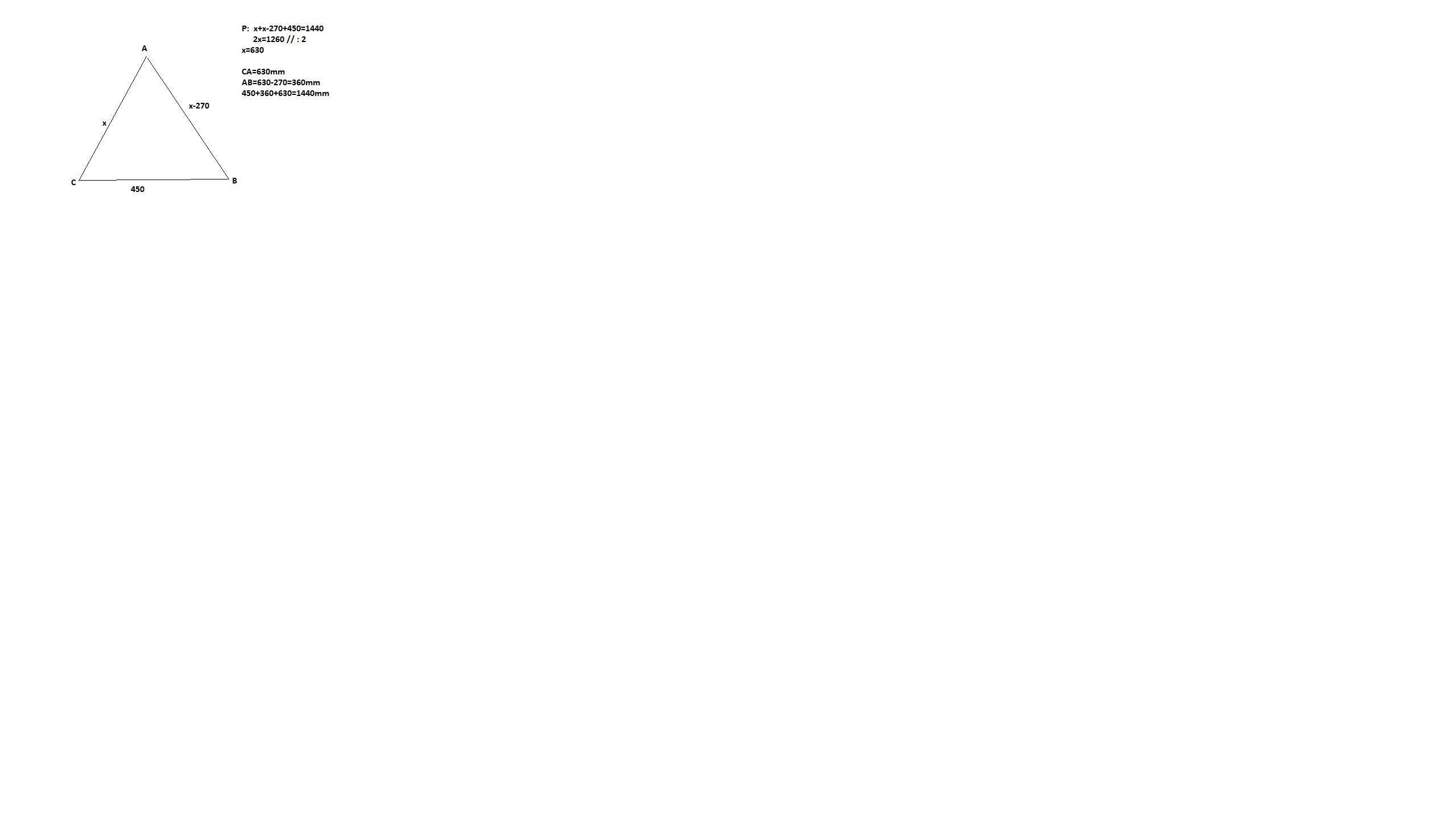 Периметр треугольника CAB равен 1440 мм, одна из его сторон равна 450 мм. Вычисли две другие стороны треугольника, если их разность равна 270 мм.