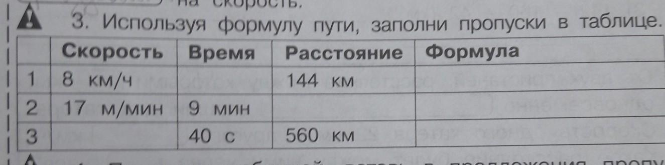 Используя формулу пути Заполни пропуски в таблице,4класс математика