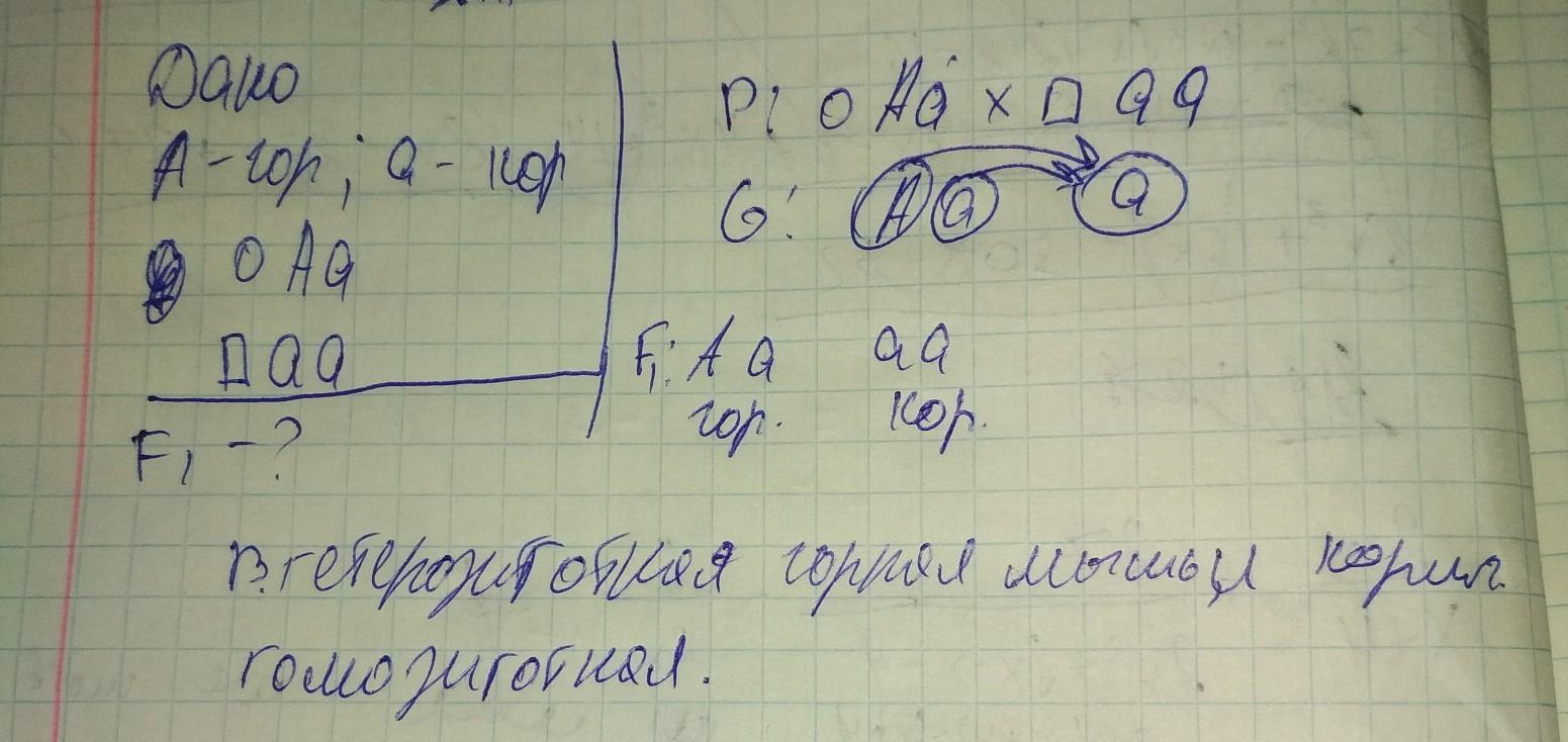 Скрестили черную гетерозиготную самку мыши с коричневым самцом. Определите генотипы и фенотипы F1, если известно, что черный цвет доминирует. Составь схему скрещивания и решения.