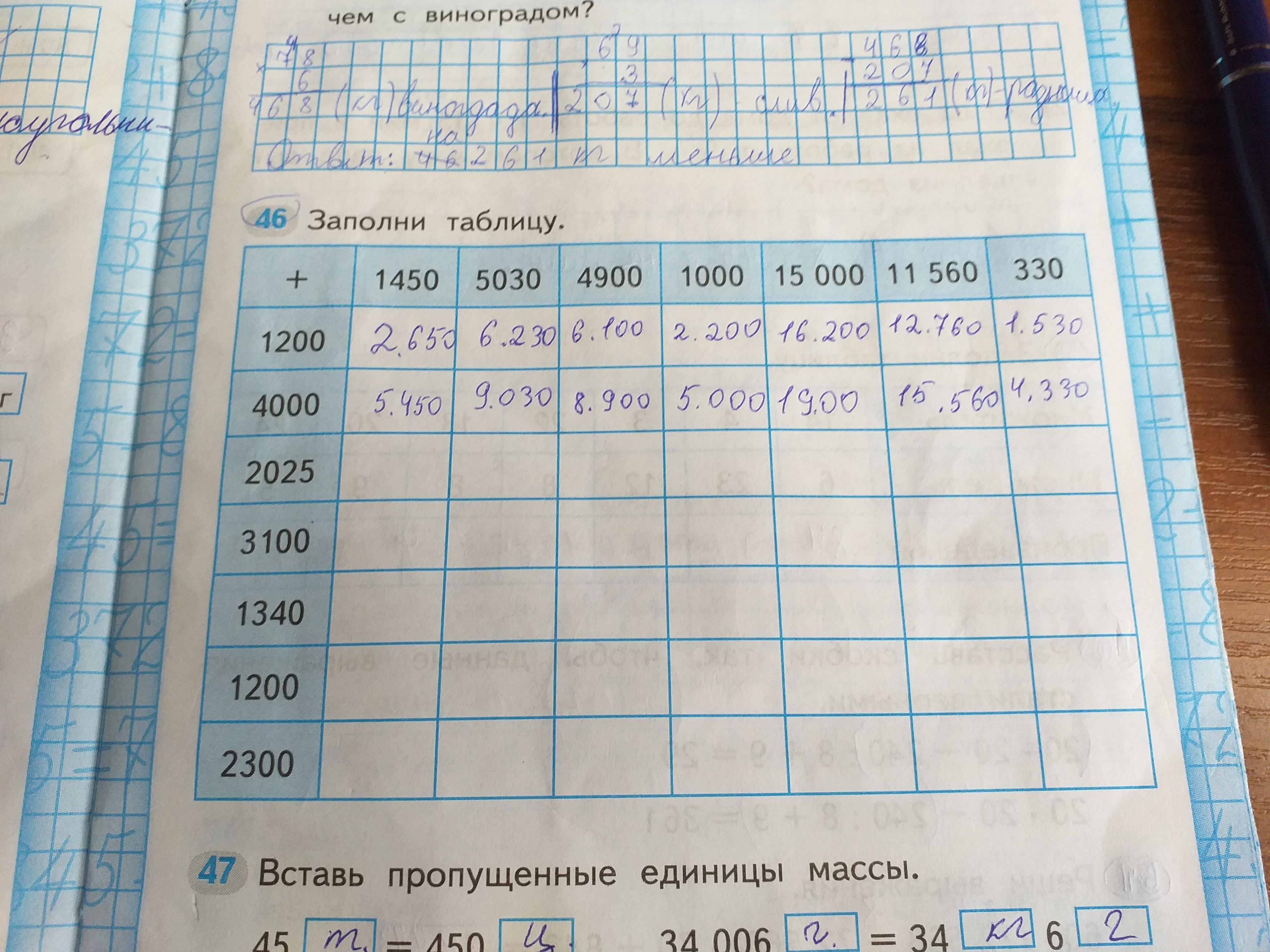 Помогите. Матемка. Заполни таблицу. Номер 46. Я уже начала. Продолжите.