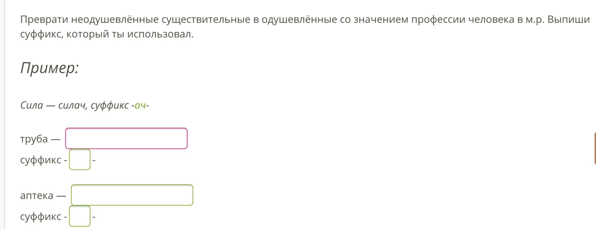 Труба-трубач суффикс ач