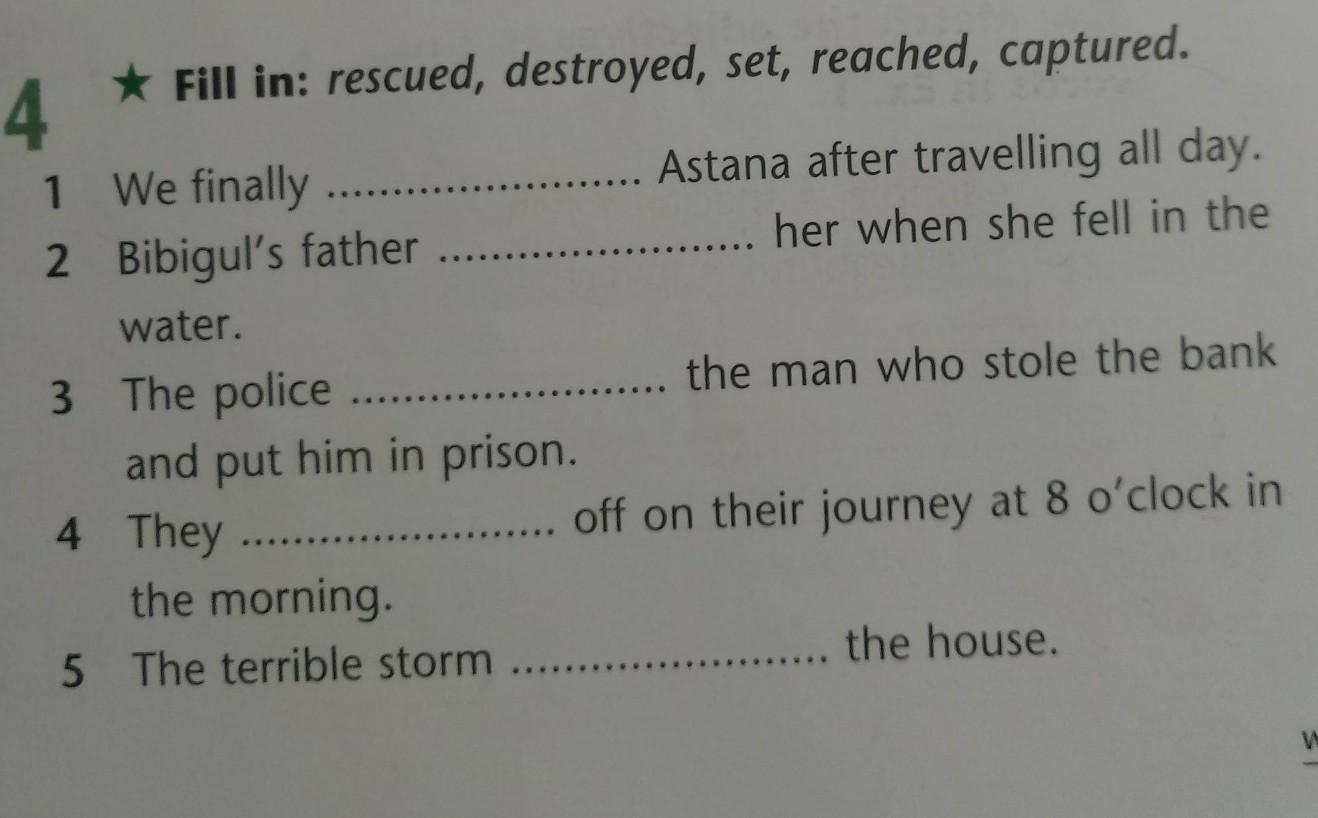 1)reached; 2)rescued; 3)captured; 4)set; 5)destroyed.