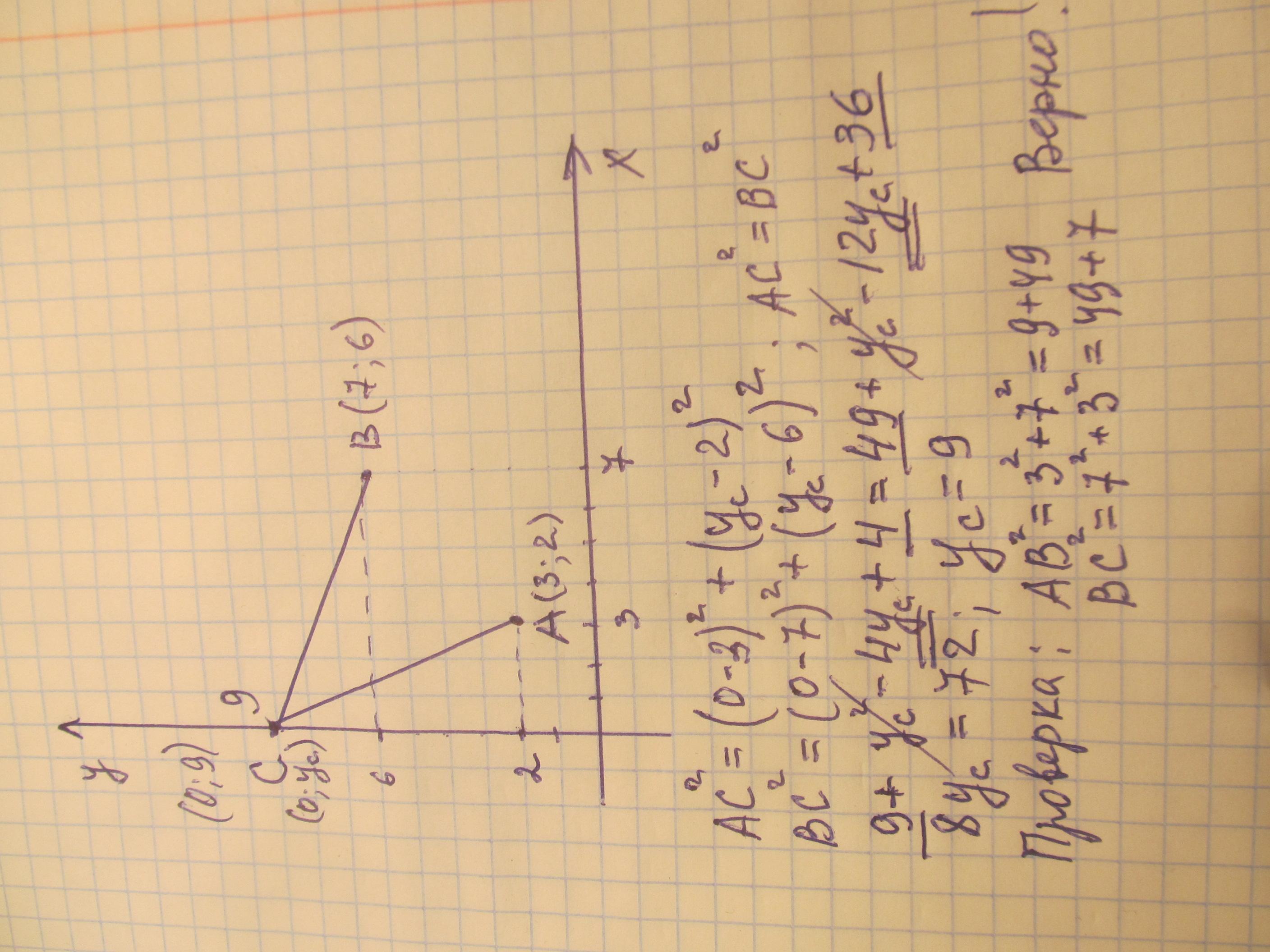 2) если же точка лежит на оси ординат, то С (0;уС)