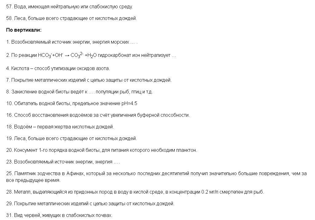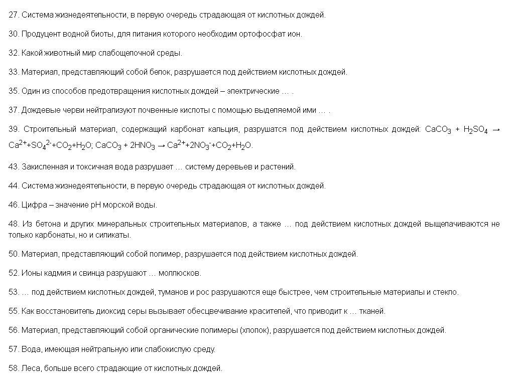 составьте кроссворд по обж на тему кислотные осадки
