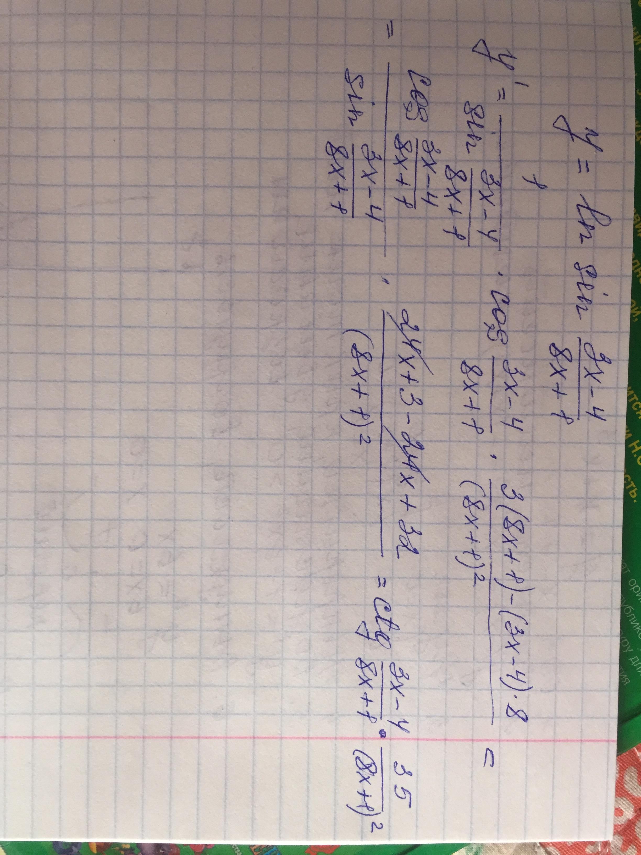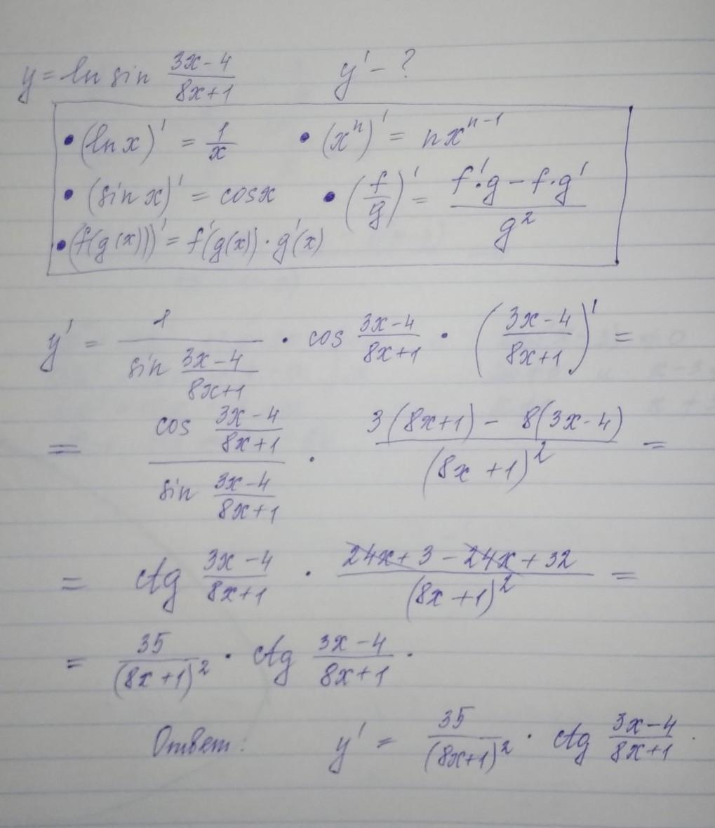 Найти производную сложной функции (ln sin 3x-4/8x+1)