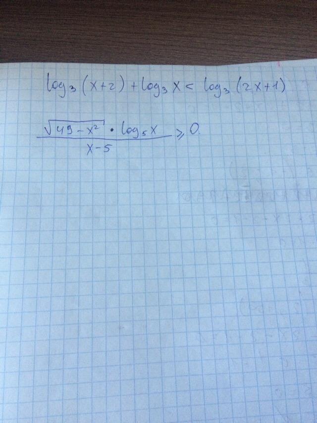 | корень из (49 - х^2) * log (по основанию 5) больше либо равно 0