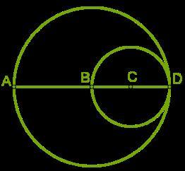 Помогите пожайлуста((( Известно, что точка B — центр большой окружности, точка C — центр меньшей окружности, а точка D — единственная общая точка обеих окружностей.