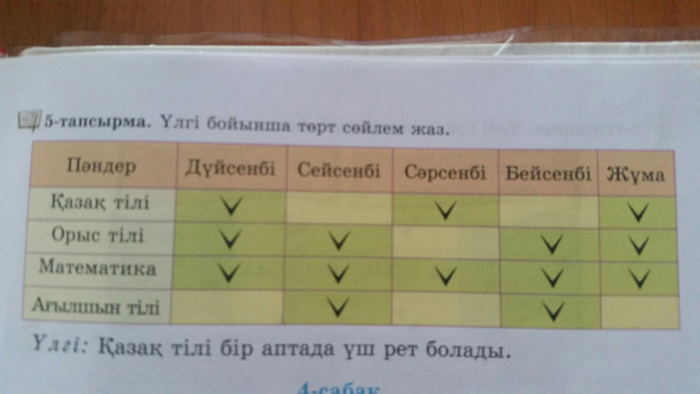 1)Орыс тілі бір аптада төрт рет болады. 2)Математика бір аптада бес рет болады 3) Ағылшын тілі бір аптада екі рет болады