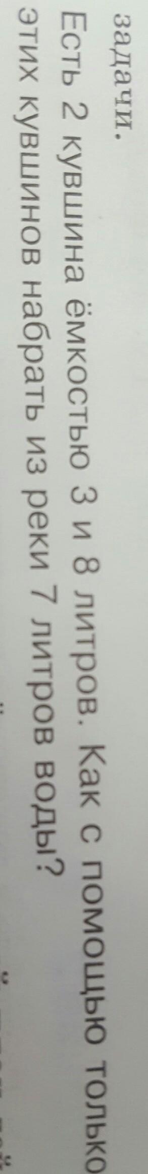 1 полный кувшин ёмкостью 3 литра и половина кувшина ёмкостью 8 литров. 3+4=7