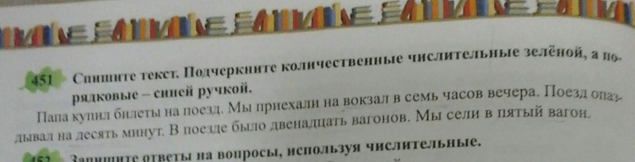 Папа купил билеты на поезд. Мы приехали на вокзал в семь часов вечера. Поезд опаздывал на десять минут. В поезде было двенадцать вагонов. Мы сели в пятый вагон.