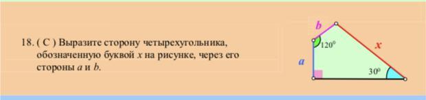 так как катет лежащий против угла 30° равен половине гипотенузы то BD=x/2 ⇒ x=2BD=2(a+b/2)=2a+b