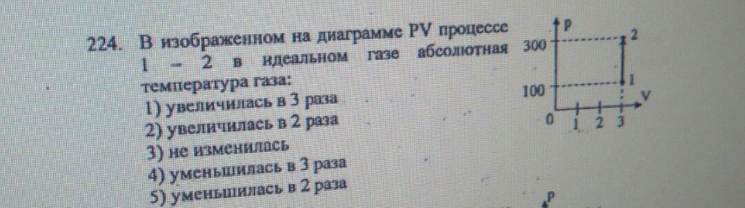в изображенном на диаграмме PV процессе 1-2 в идеальном газе абсолютная температура газа: