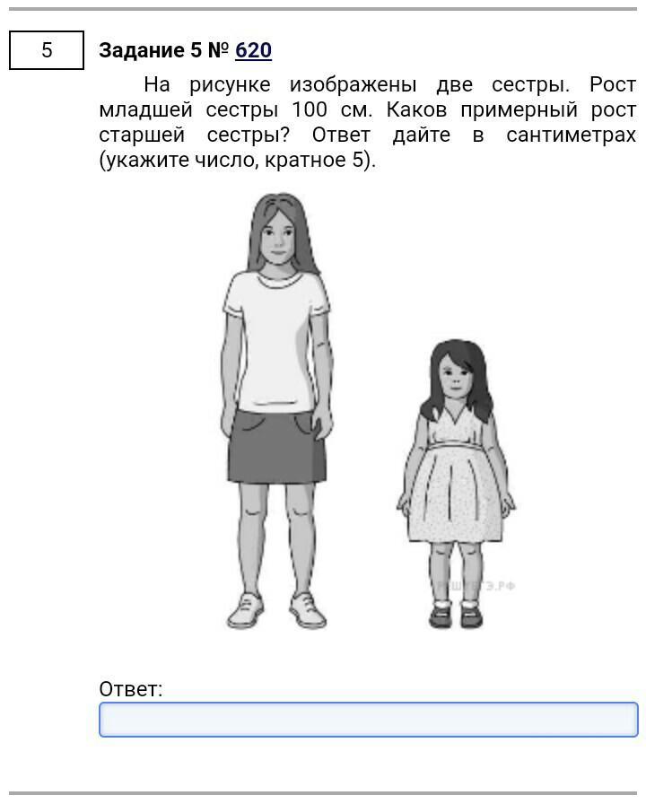 Рост старшей сестры больше примерно в 1,5 раза, поэтому ее рост примерно от 130 до 170 сантиметров.