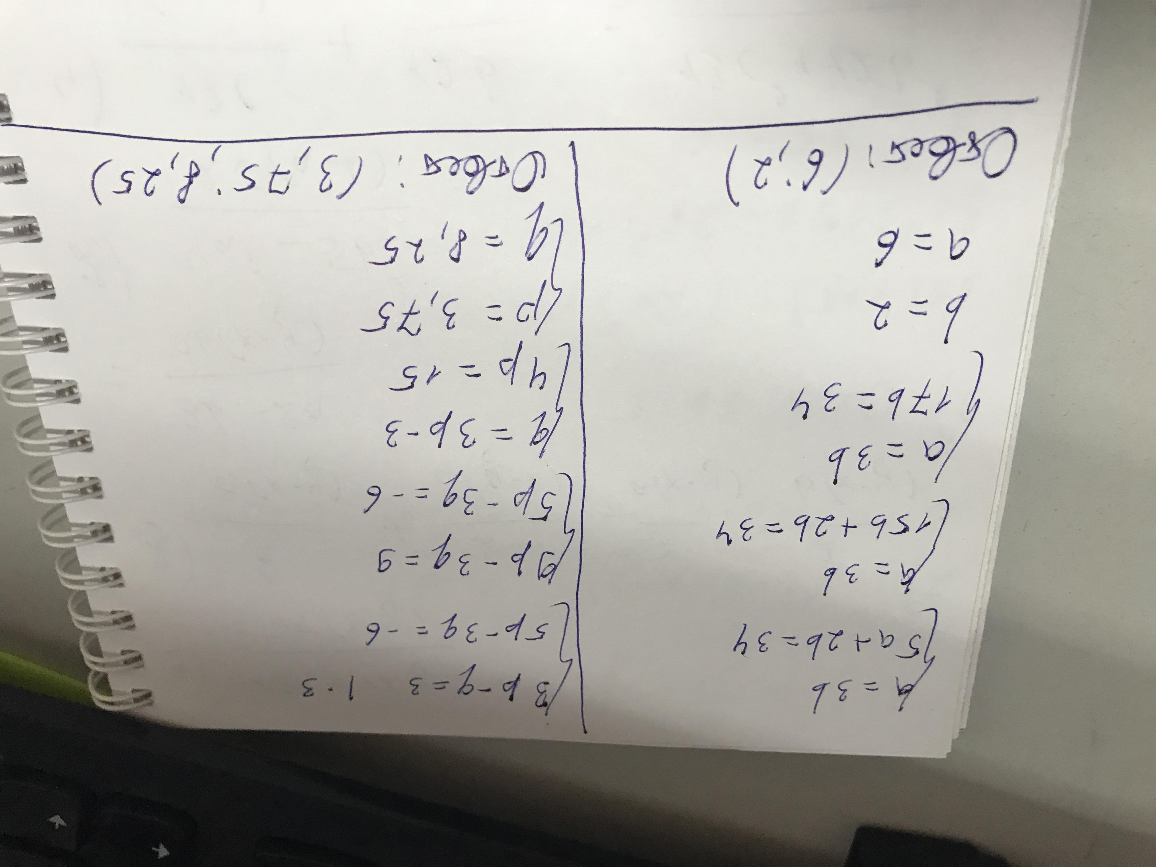 решите систему уравнений a=3b 5a+2b =34 3p-q=3 5p-3q=-6