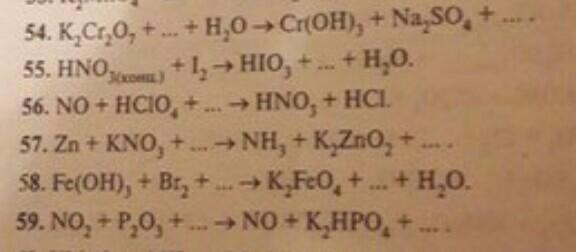 1. K₂Cr₂O₇ + 3Na₂SO₃ + 4H₂O → 2Cr(OH)₃ ↓ + 3Na₂SO₄ + 2KOH