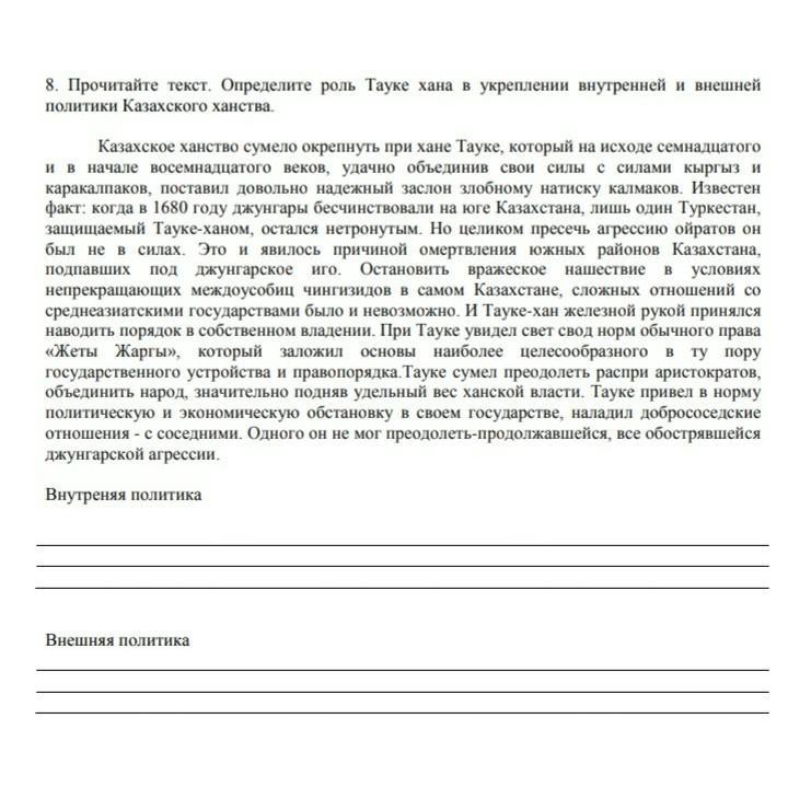 Тауке-хан автор свода законов «Жеты Жаргы» вместе с "Пир трех джузов"Мусирали Софы Азиз, Толе би, Казыбек би, и Айтеке би. Проводит реформу укрепления власти: ослабляет власть султанов, в политике управления государством опирается на биев. Создаёт ханский совет и совет биев.