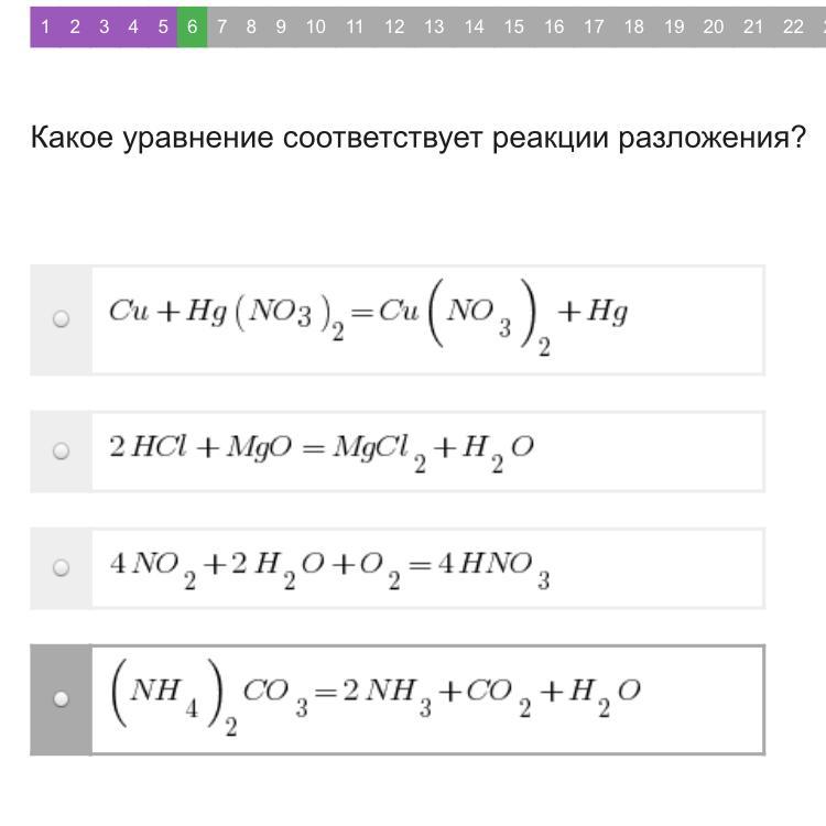 Какое уравнение соответствует реакции разложения?