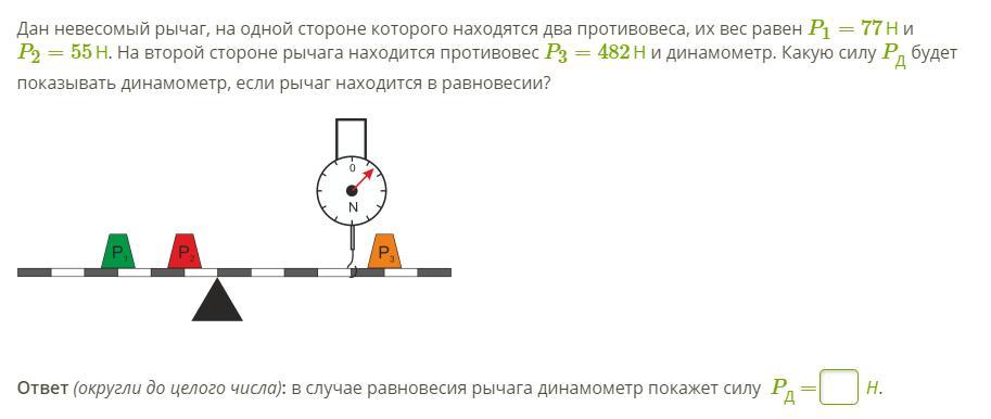 Рычаг, показание динамометра при равновесии