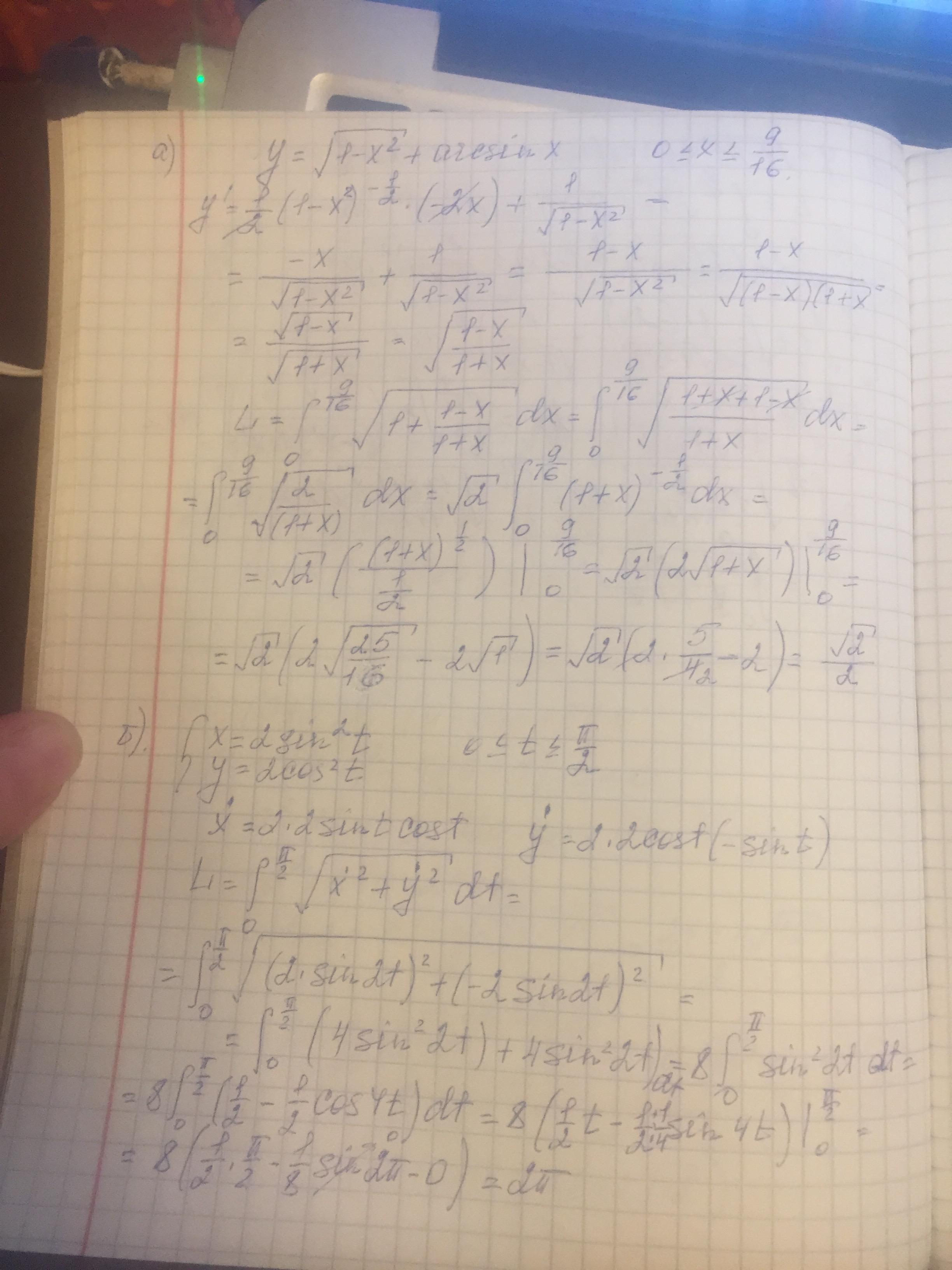 Вычислить длины дуг кривых, что заданы уравнениями.