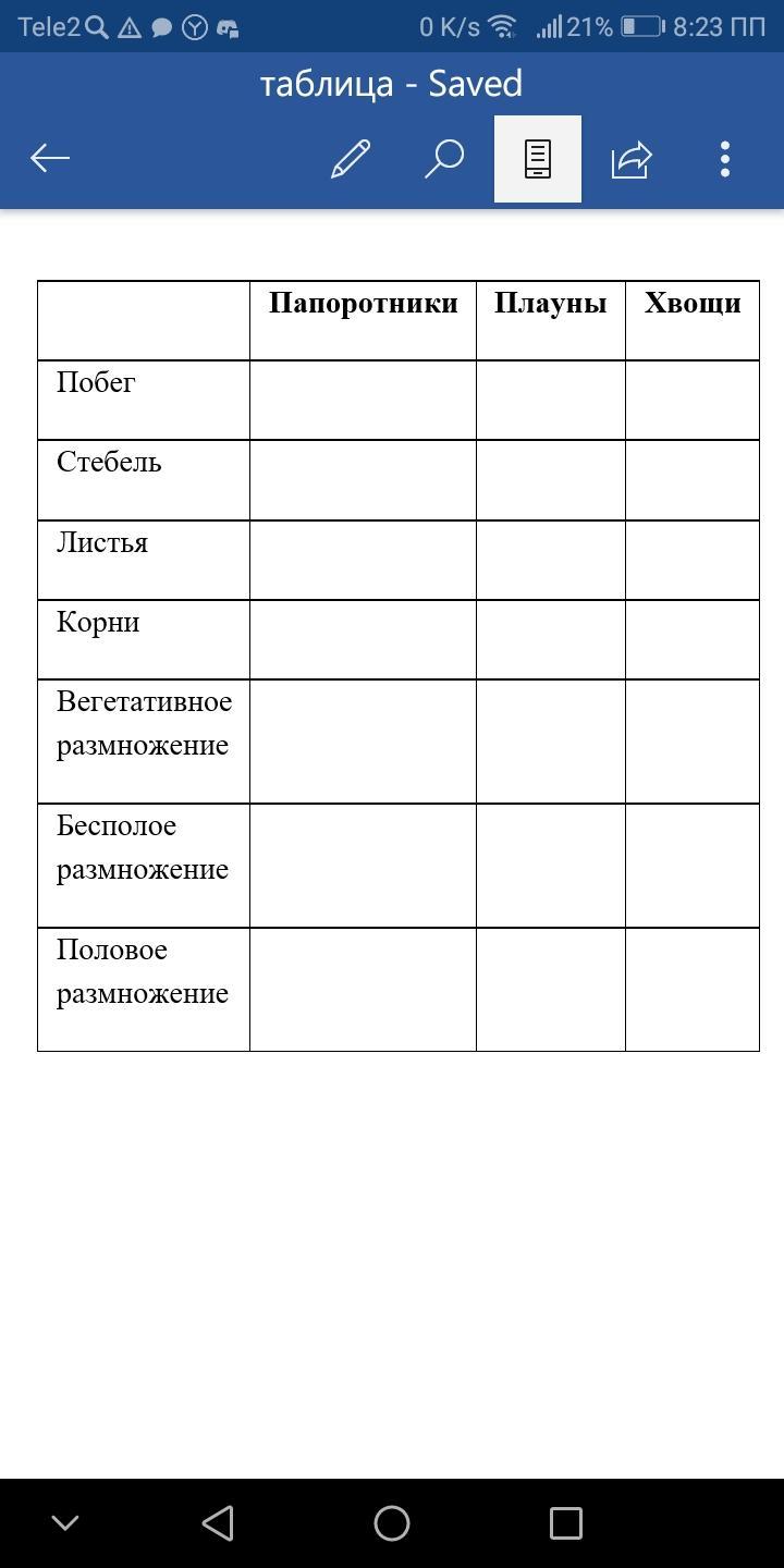 папоротники: -, +, +, +,-,+,-;