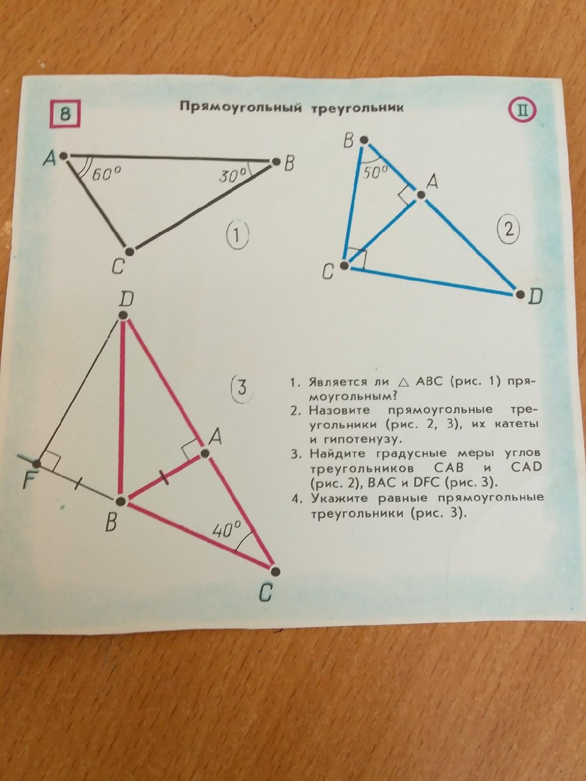 2). △BAC (катеты BA и CA), CAD (катеты CA и AD), △CBD (катеты CB и CD), △DFC (катеты DF и FC), △FDB (катеты DF и FB), △DAB (катеты DA и AB), △BAC (катеты AC и BC).